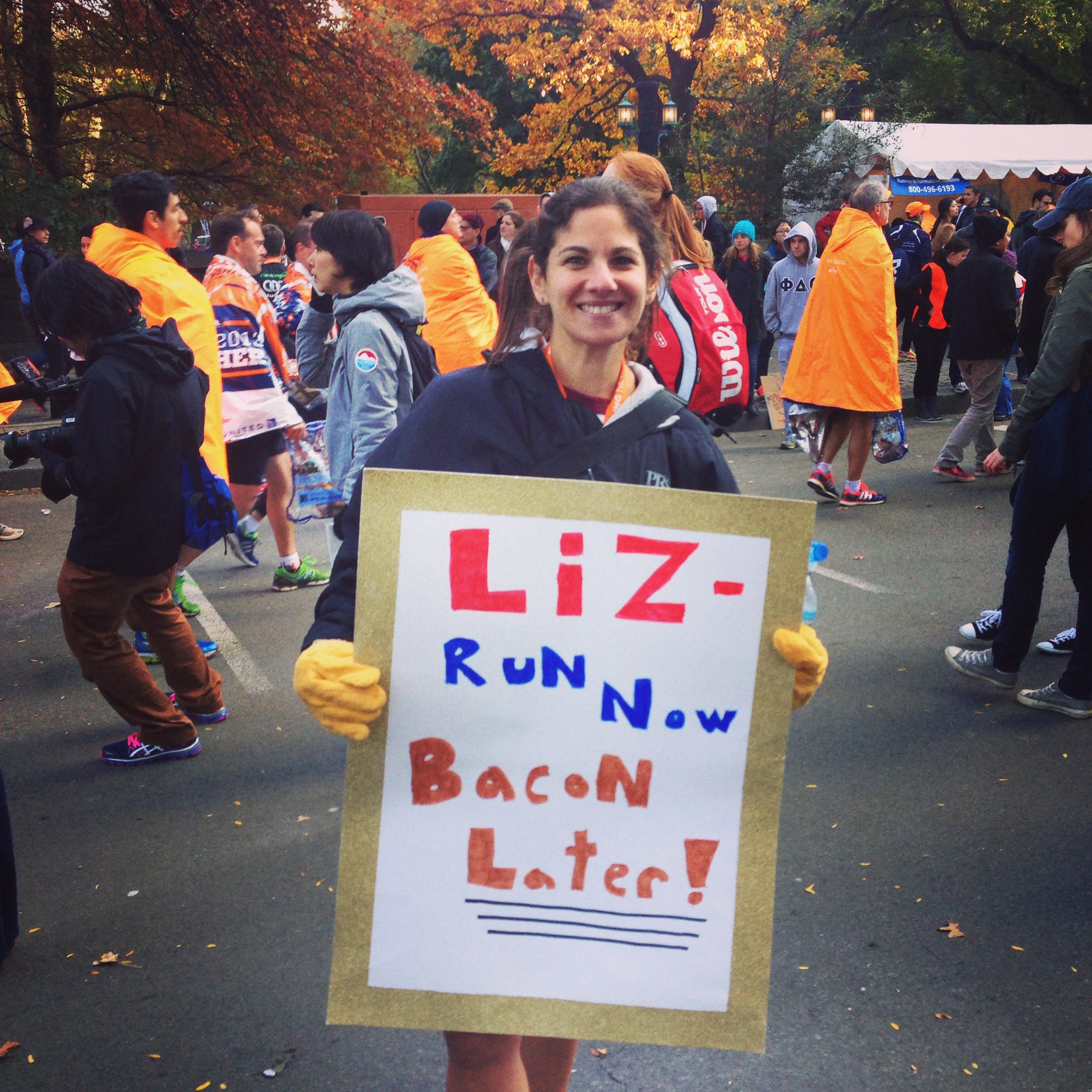 “RUN NOW! BACON LATER! GO LIZ” – thank you – from me, and some other girl named liz.