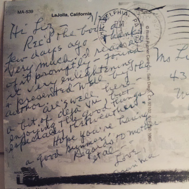 G’ma sent a postcard thanking me for the book.
